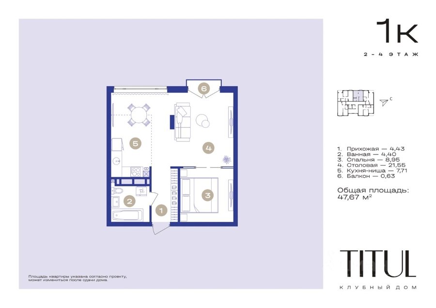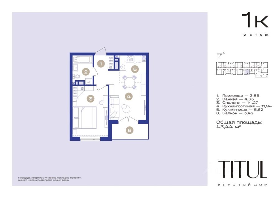 Площадь от 43 м2